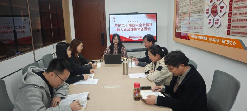 为深入学习贯彻党的二十届四中全会精神,有效推动全会精神融入思想政治理论课教学,切实提升思政课的思想性、理论性、亲和力与针对性,近日,马克思主义学院毛泽东思想和中国特色社会主义理论体系概论教研室组织召开“党的二十届四中全会精神融入思政课教学集体备课会”。教研室全体教师现场参会,其他思政课教师通过线上平台同步观摩,实现教研资源全院共享。